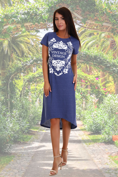 Фото товара 15418, синее домашнее платье