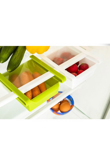 Белая и зеленая полка для холодильника в наборе. Если у вас в холодильнике мало места, рекомендуем купить сразу несколько наборов.